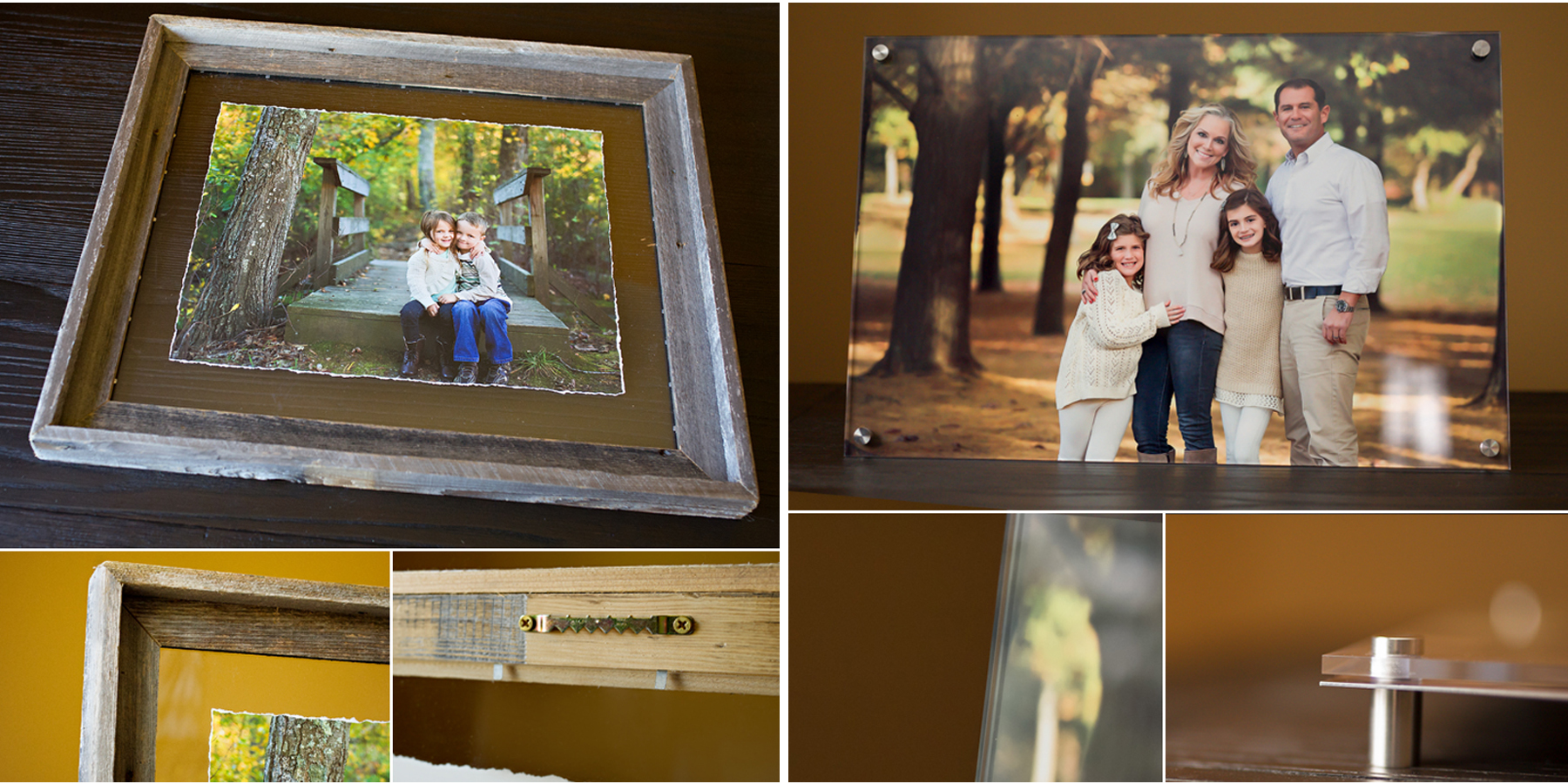 I now offer not only the traditional canvas, but a wood framed canvas as well that hangs from a jute cording. For those who wish to go a more traditional route, I offer a wide variety of frames, from sleek and modern to more rustic looks, including (by far my most popular) floating torn-edge barnwood framed fine art prints. For those of you who want a more modern look – stunningly vivid metal prints faced with 1/4″ thick acrylic and stainless steel posts that allow it to float away from the wall might be the way to go. One of these is included with every deluxe package