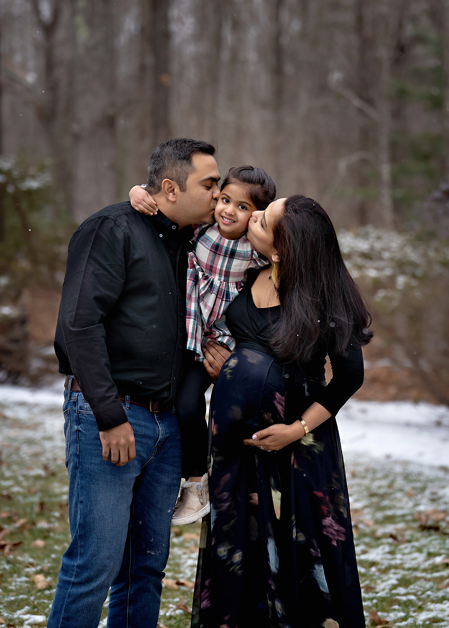 If you are thinking about a maternity session in winter, I always suggest cozy layers, warm shoes, and some patience with the little ones—but don’t worry, it’s worth it! The snow adds a magical, timeless element to the images that you’ll treasure for years to come.